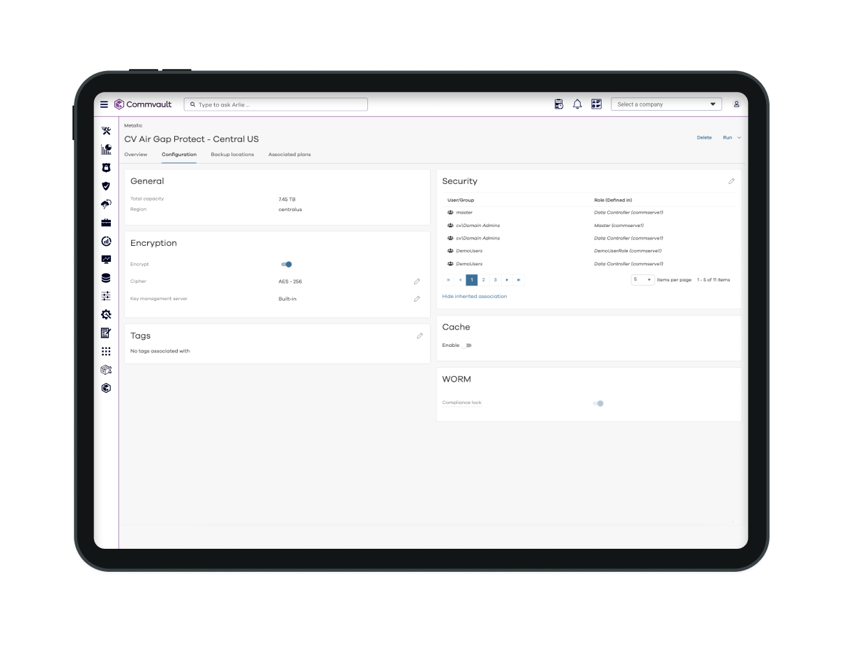 The Air Gap Protect Archive tier delivers secure, cost-efficient long-term retention for compliance and minimal-access data. By using Commvault’s Combined Storage Tiering, Air Gap Protect Archive keeps only essential metadata on high-performance storage while placing the backup data itself in the Archive tier.