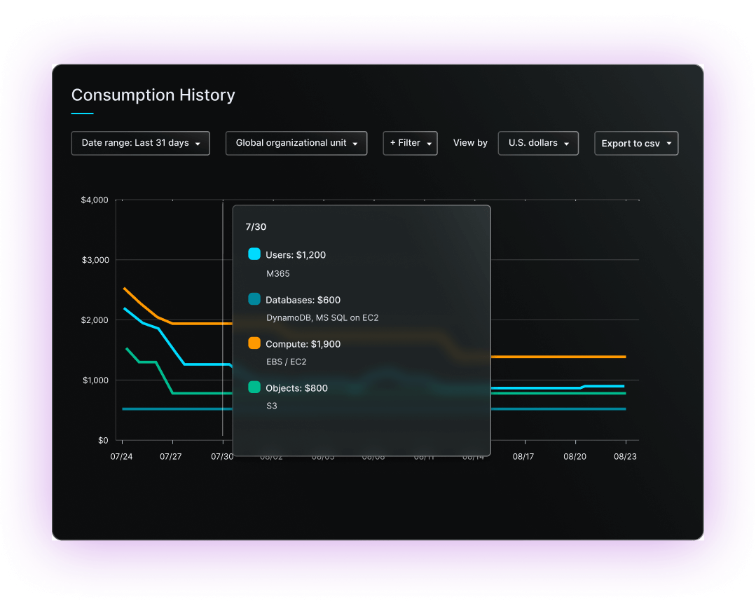 Incremental-forever backups that help eliminate redundant copies and optimize storage efficiency—helping to reduce AWS backup TCO by over 30% on average.