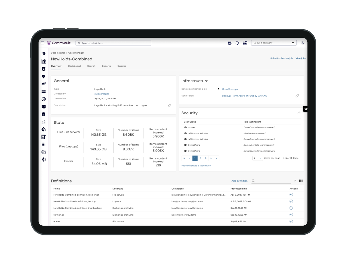 Commvault Cloud Compliance makes it easy to stay on top of compliance, regulatory, and legal needs.