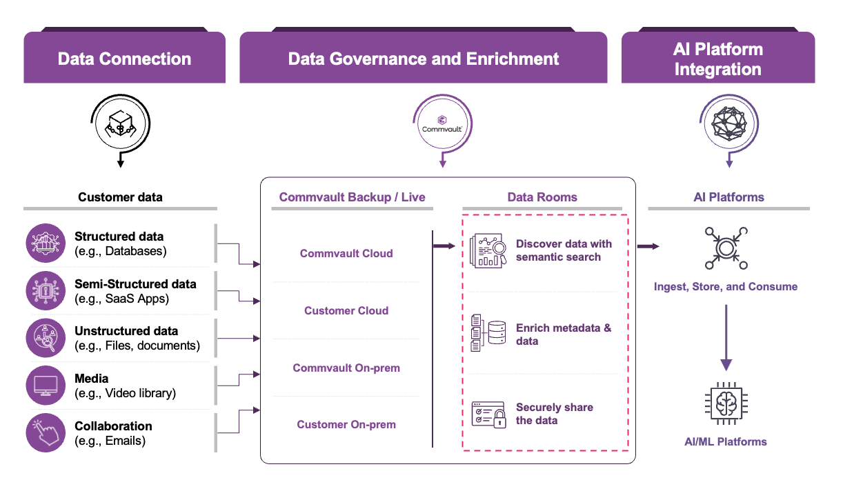 • Commvault’s Data Rooms offering transforms backup data into trusted, AI-ready assets while helping maintain governance and compliance.
