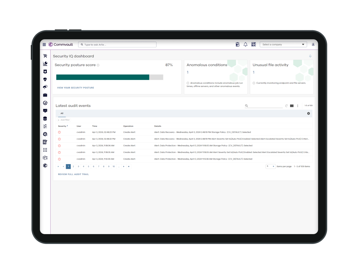 Secure, monitor, and respond. Security IQ delivers integrated insights to validate, secures, and actively defend data at its core – while driving better recovery outcomes.